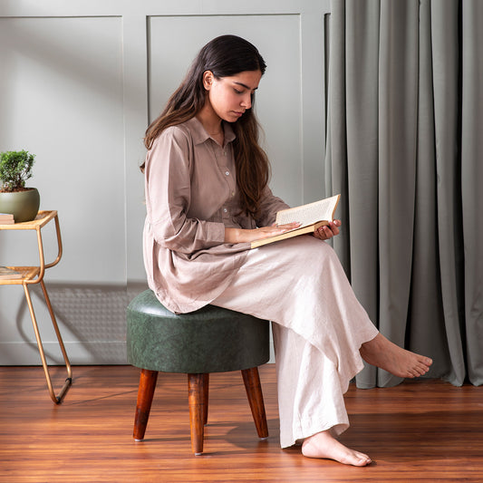 Brick Forest Green Faux Leather Ottoman Set Of 2