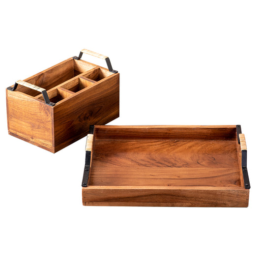 Buy Acacia Wood Spoon Stand with Serving Tray Online