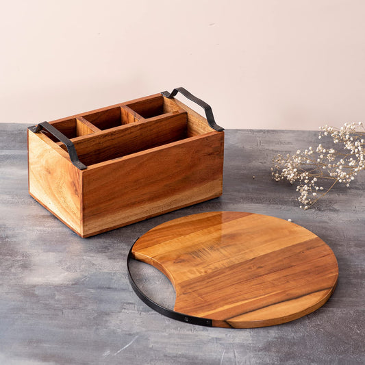 Buy Acacia Wood Spoon Stand with Serving Platter Online