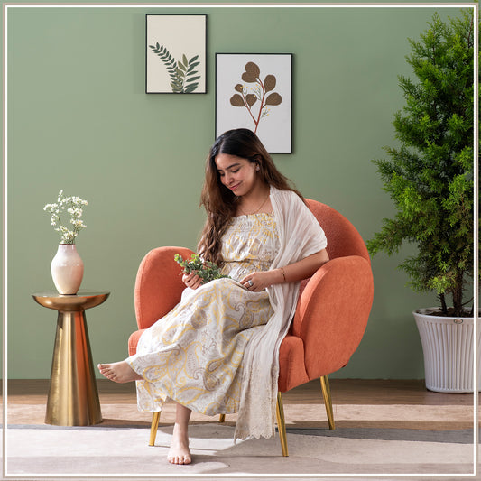 Sunshine Daydream Boucle Lounge Armchair in Orange Color | Nestroots