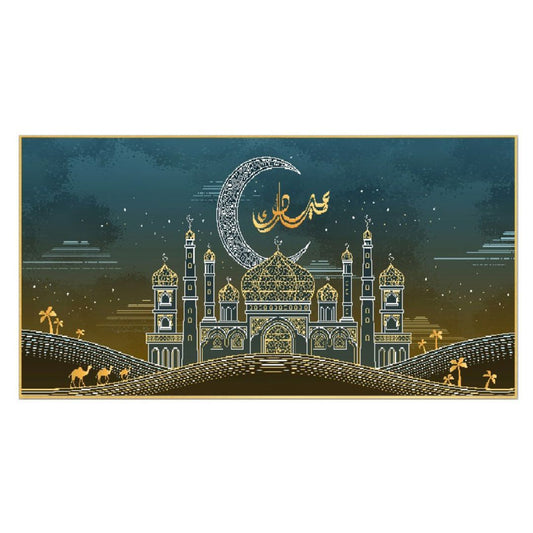 Vibrant Ramadan Mosque and Crescent Wall Painting