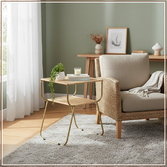 Rattan Metallic tiered End Table in Gold Color Set of 2