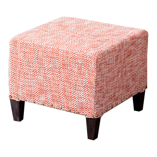 Slub Jacquard Wooden Seating Stool in Orange Color Set of 2
