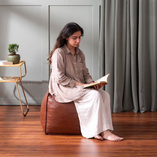 Cuboid Collection Dark Brown Faux Leather Pouf Ottoman Set Of 2