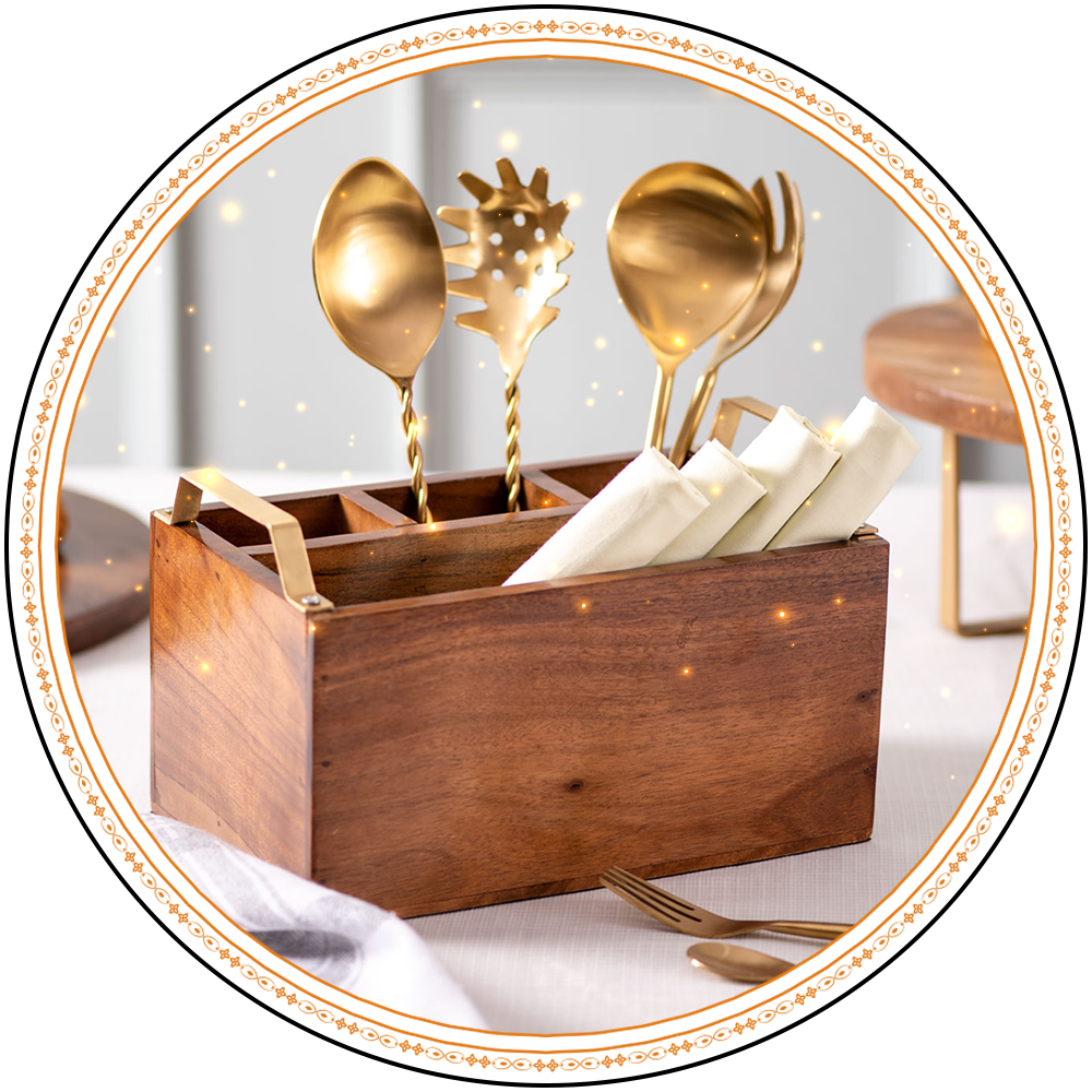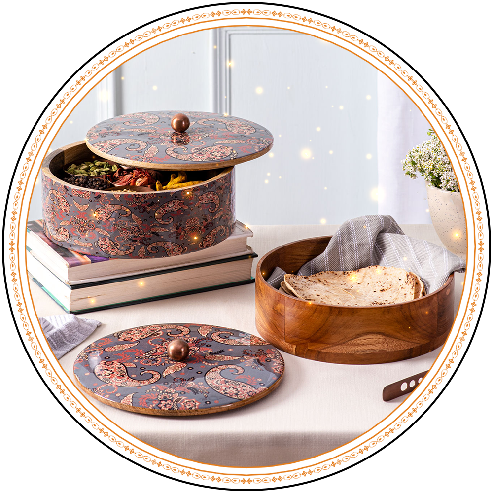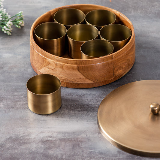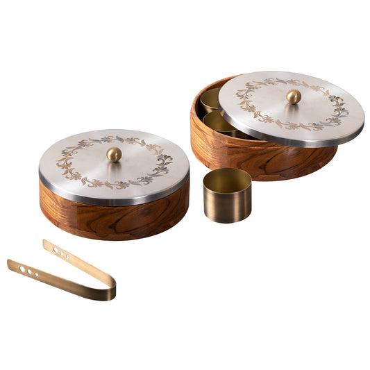 Inscribe Acacia Wood Masala Box - Floral Silver