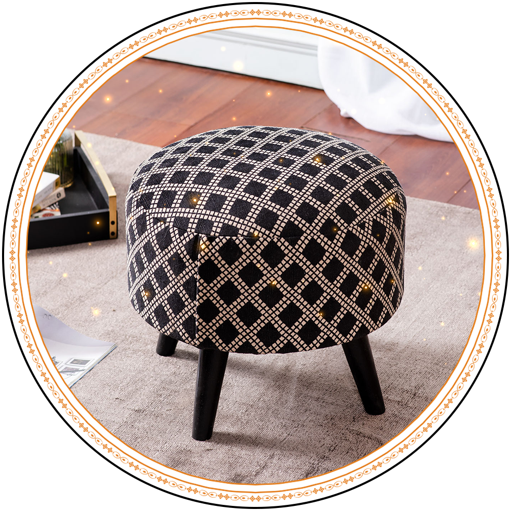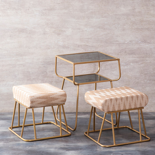Metallic Ottoman Set of 2 with 2 tier Double Decker Table