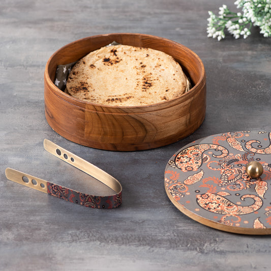Grey Enamel Print Roti box & 5 Jar Masala box