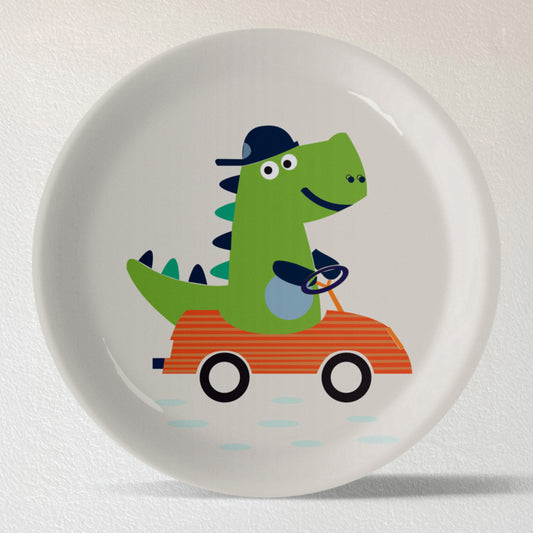 Playful Art for Kids' Rooms Dino car porcelain plate