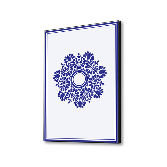 Elegant Blue Floral Tile Canvas Wall Painting Printed