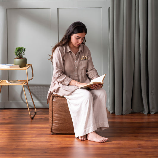 Cuboid Collection Brown Faux Leather Pouf Ottoman