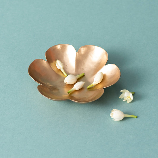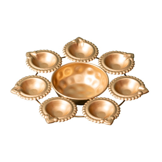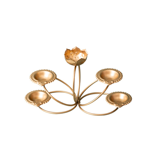 Elegant Golden Lotus Candle Holder Urli 4 Diyas