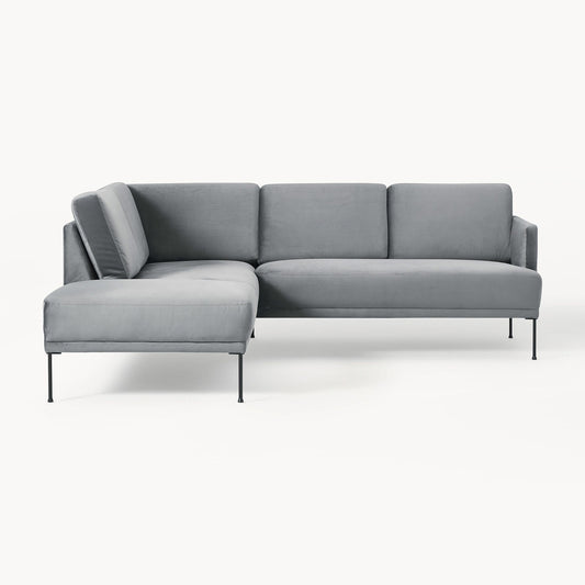 ModernElegance L Shaped 5 Seater Velvet Grey