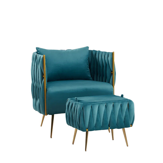 Velvet Accent Chairs With Ottomans Footrest Teal