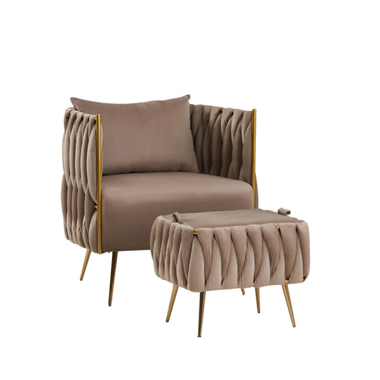 Opulent Velvet Majesty Accent Chair With Ottoman Footrest Brown
