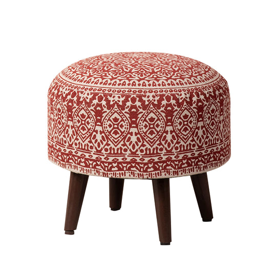 Mandala Fabric Wooden Ottoman in Red Color Set of 2