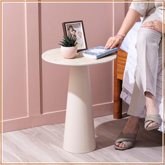 Contemporary Ivory Charm Side Table With Ceramic Top | Nestroots