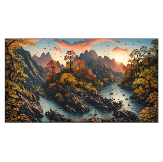 Tranquil River Through Majestic Mountains Wall Painting