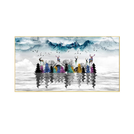 Tranquil Reflections: Deer by Pond Wall Painting