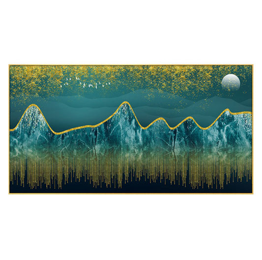 Golden Trees: Tranquil Blue Serenity Wall Painting