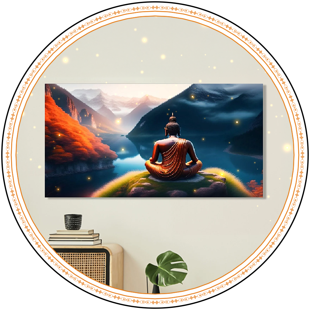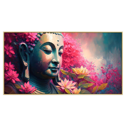 Serenity: Buddha Amidst Blooming Flowers Wall Painting