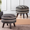 Bohemian Jacquard Wooden Ottoman in Black & White Set of 2