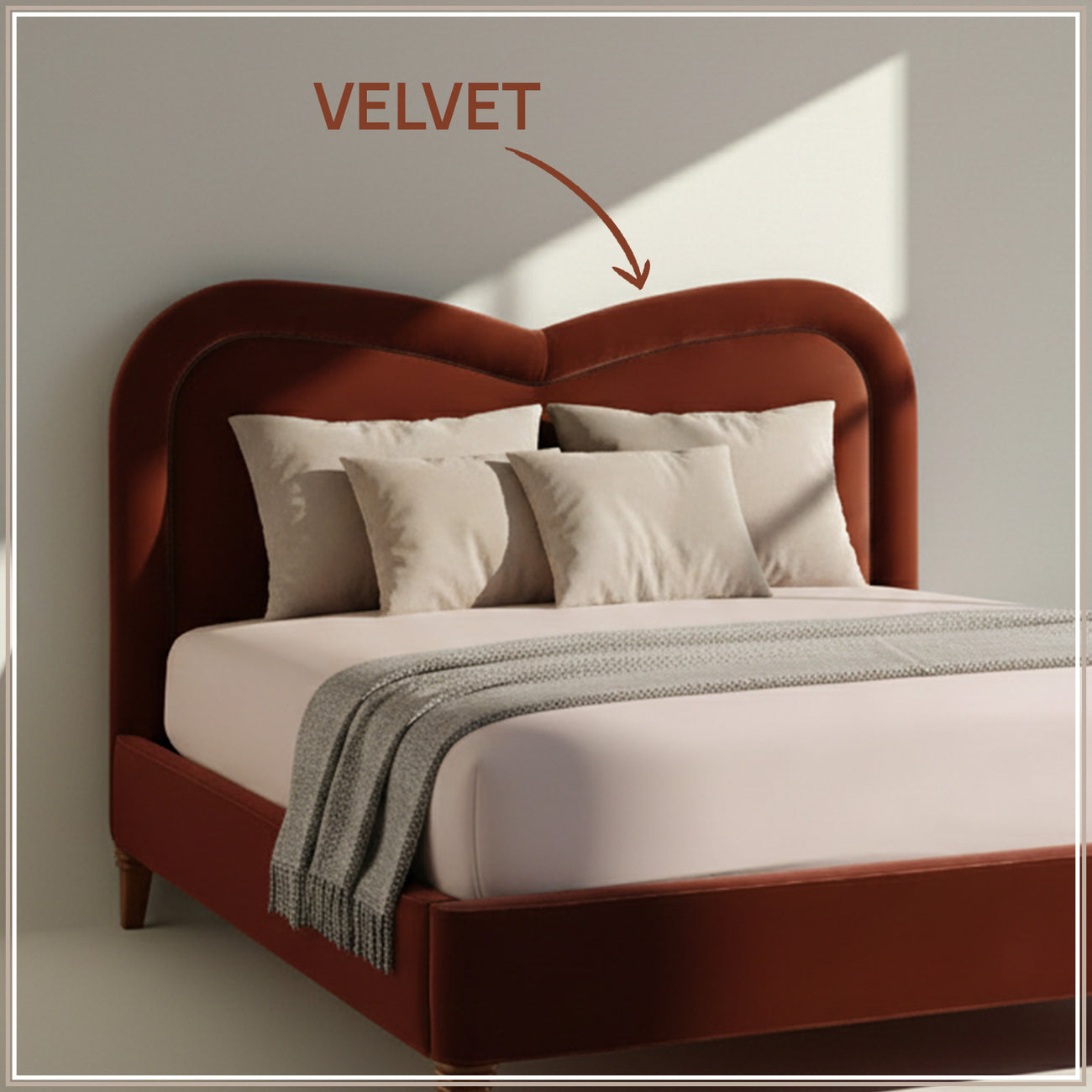 Elaris Curve Comfort King Size Bed in Rust Velvet with Engineer Wood Frame & Hydraulic Storage