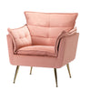 Introducing our Elegant Chaise accent chair with velvet upholstery and stylish gold metallic legs—a luxurious addition to your living room, bedroom, or dressing area, offering both elegance and comfort.