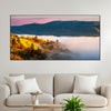 This captivating canvas print features a serene landscape shrouded in ethereal fog, creating a tranquil atmosphere. The foreground is adorned with elegantly silhouetted trees, their intricate branches adding depth and character to the scene. The soft, muted colors evoke a sense of calm and introspection, making it an ideal addition to any living space. Perfect for those seeking to enhance their home decor with a touch of nature's beauty and mystery.