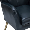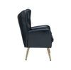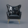 The Extravagant Single Seater Sofa Accent Chair in grey faux leather with gold metallic legs adds luxury to living rooms and bedrooms, combining sleek design with plush comfort and sophistication.