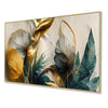 Printed Canvas Wall Painting Artwork in Landscape. Designers' Pen: This exquisite wall painting features delicate gold leaf flowers meticulously hand-painted on canvas, creating a stunning and elegant piece of art. The intricate details of the flowers add a touch of sophistication to any room, making it a perfect focal point for your home decor. The shimmering gold accents against the white canvas provide a luxurious and timeless aesthetic that will surely impress any guest.