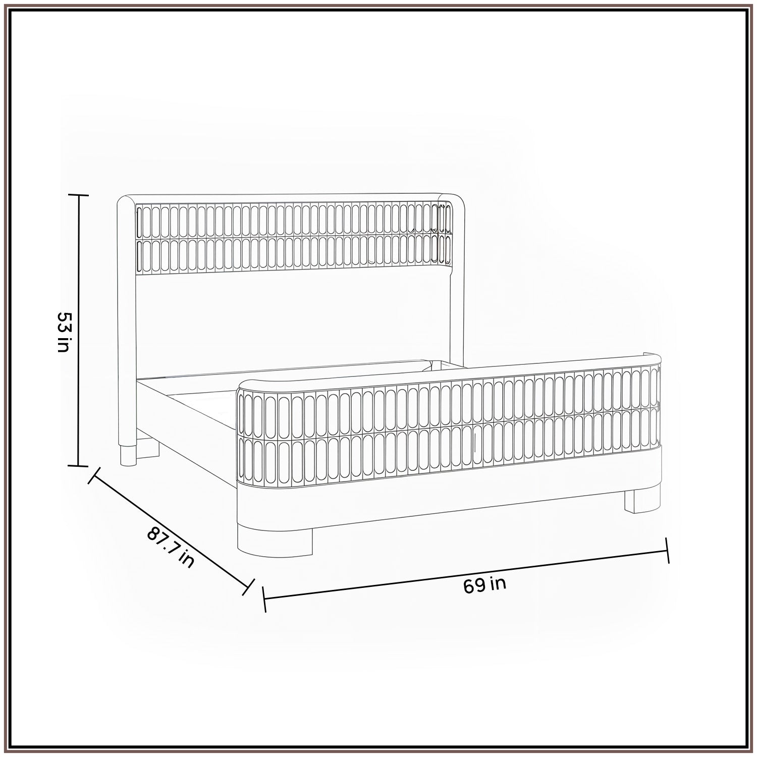 Queen Size Dimensions: Length - 87.7 Inches; Width - 69 Inches; Height - 53 Inches