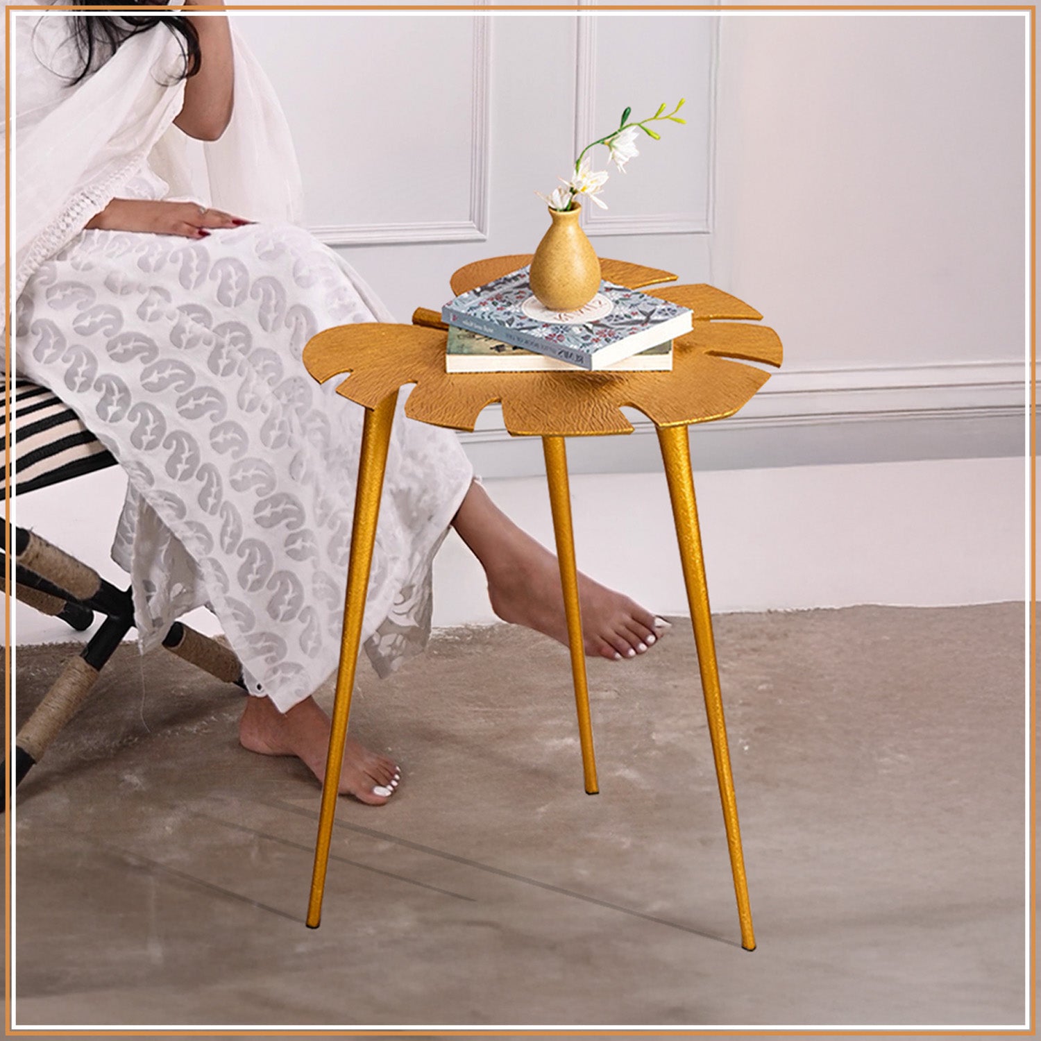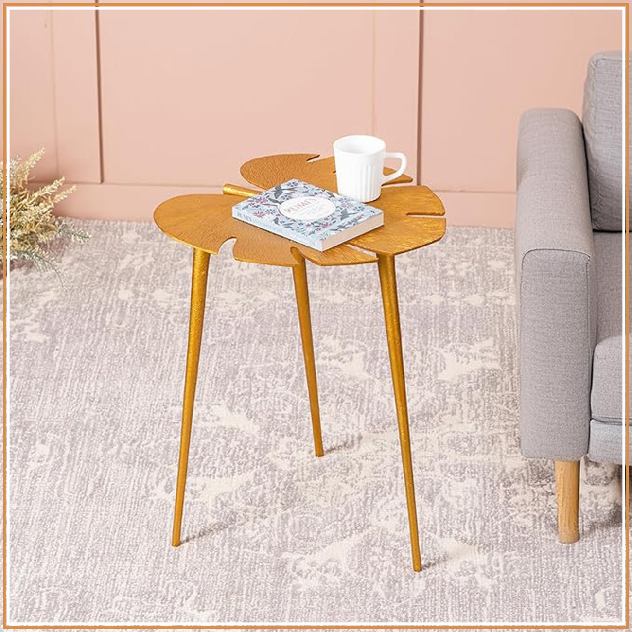 Cosmo Aluminium Leaf End Table in Gold Color