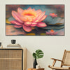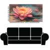 Printed Canvas Wall Painting Artwork in Landscape. Designers' Pen: This exquisite wall painting features a stunning lotus flower surrounded by lush green leaves, creating a serene and elegant atmosphere in any room. The intricate details and vibrant colors of the artwork bring a sense of tranquility and beauty to the space, making it a perfect addition to any home or office decor. Measuring at a generous size, this piece is sure to make a statement and captivate all who behold it.