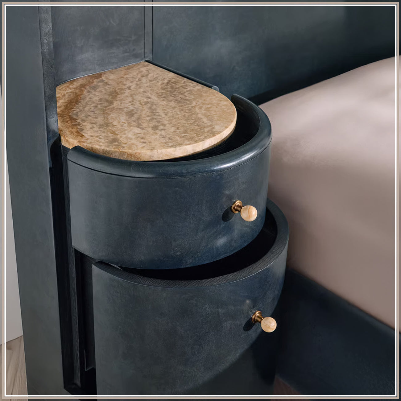 This premium bed features a non-cushioned solid headboard with a sleek upholstered finish, supported by uniquely designed round cylindrical legs that offer strong stability and a modern look. It includes two spacious side drawers on both sides for convenient access, along with a smooth hydraulic storage system that provides ample space for bedding and essentials. Crafted with a sturdy wooden frame, the bed ensures long-lasting durability, proper mattress support, and comfortable sleeping for people up to 7 feet in height, making it an ideal choice for contemporary bedrooms combining style and functionality.