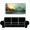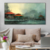 Printed Canvas Wall Painting Artwork in Landscape. Designers' Pen: This wall painting depicts a serene scene of a pier with a striking red roof, set against a backdrop of calm waters and clear blue skies. The artist has captured the essence of a peaceful seaside setting, inviting viewers to imagine themselves strolling along the wooden planks of the pier. The vibrant red roof adds a pop of color to the otherwise tranquil composition, making it a captivating focal point in any room.