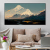 Printed Canvas Wall Painting Artwork in Landscape. Designers' Pen: This stunning wall painting depicts a majestic mountain range with graceful birds soaring above it. The artist has skillfully captured the serene beauty of nature, showcasing the towering peaks and the freedom of the birds in flight. The vibrant colors and intricate details bring the scene to life, making it a captivating addition to any wall. This wall painting is a perfect choice for those seeking to bring the tranquility and grandeur of the mountains into their living space.
