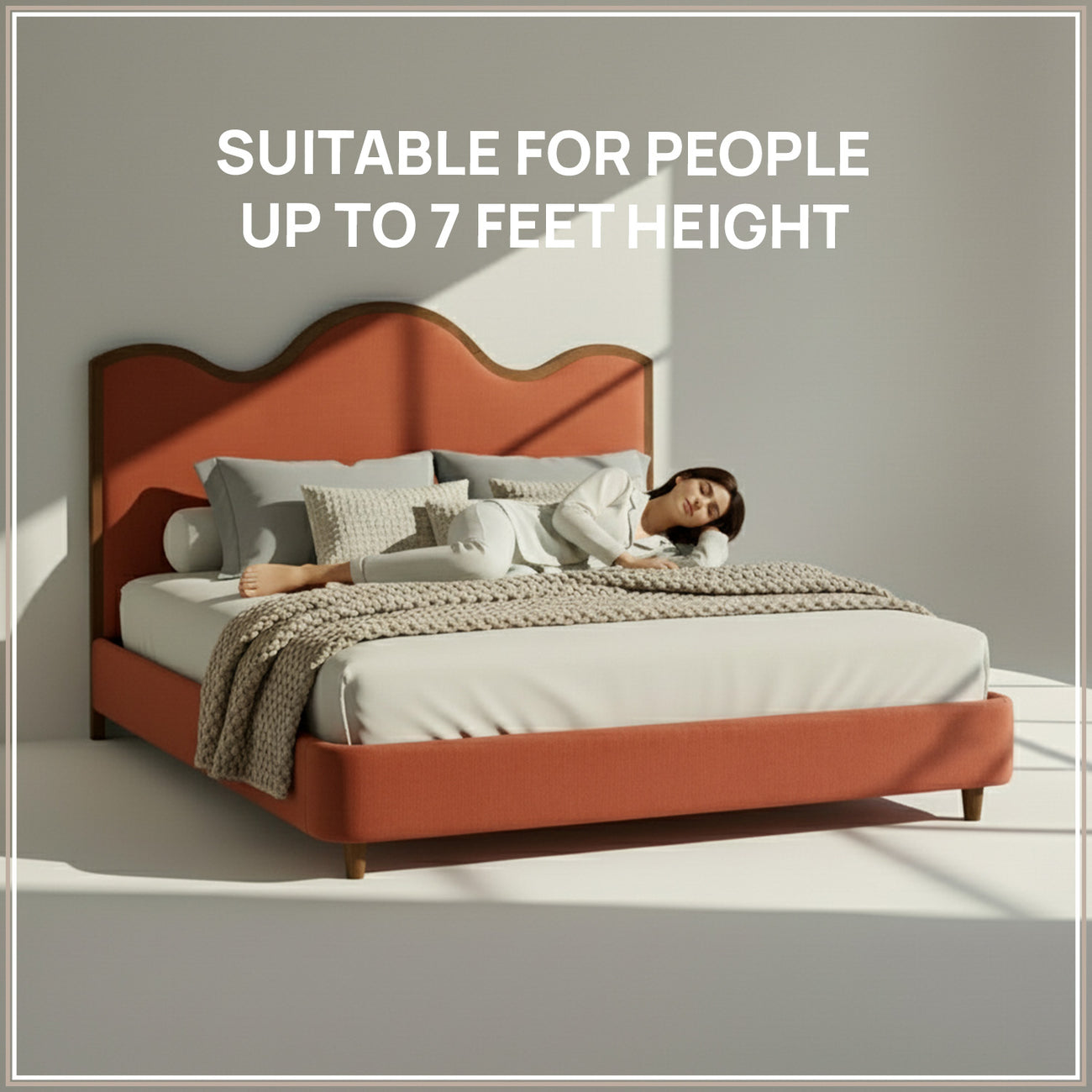 This stylish bed features a soft cushioned headboard with a unique wave-inspired design that adds a bold yet elegant character to the bedroom while providing comfortable back support. Upholstered in premium fabric with a clean, structured frame, it ensures durability and reliable mattress support. The bed is equipped with a smooth hydraulic storage mechanism that offers easy lift-up access to spacious under-bed storage, ideal for organizing bedding and essentials. Designed for everyday comfort, it provides ample sleeping space suitable for individuals up to 7 feet in height—making it a perfect blend of comfort, modern aesthetics, and refined design for contemporary interiors.