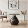 Add contemporary flair to your decor with this sleek side table boasting a smoke tempered glass top and a stylish mango wood base with enameled finish.