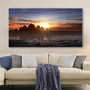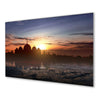 Printed Canvas Wall Painting Artwork in Landscape. Designers' Pen: The wall painting captures a serene moment as the sunset is reflected in the water, creating a mesmerizing scene. The silhouette of a mosque adds a touch of spirituality to the overall composition, making it a perfect piece for those seeking tranquility and peace in their living space. This artwork beautifully combines nature and architecture, evoking a sense of calmness and contemplation in the viewer.