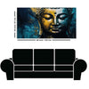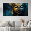 Printed Canvas Wall Painting Artwork in Landscape. Designers' Pen: This stunning wall painting features a serene Buddha face adorned with intricate gold and blue paint, exuding a sense of tranquility and spirituality. The delicate brushstrokes and vibrant colors create a captivating focal point in any room, adding a touch of elegance and mindfulness to the space. Perfect for those seeking a peaceful ambiance and a reminder of inner peace and enlightenment.