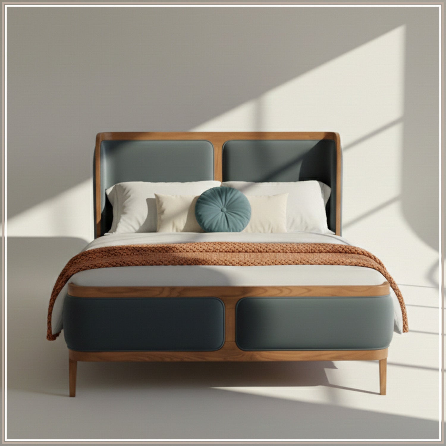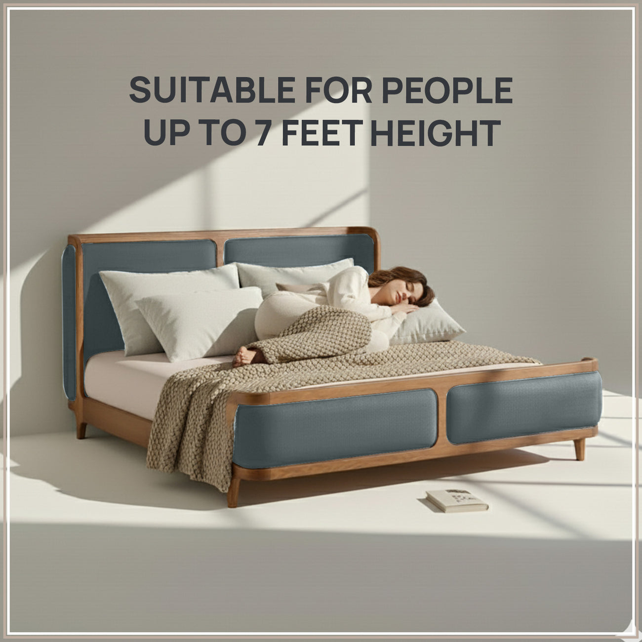 Contemporary and bold in its design language, the Nestroots Valerio Duo-Panel Luxe Bed is crafted to make a refined statement in modern bedrooms. The bed showcases a striking dual-panel upholstered headboard, thoughtfully designed to add visual depth, structure, and sophistication. Its clean geometry and balanced proportions create a strong yet elegant presence, making it an ideal choice for urban and contemporary interiors.Upholstered in rich, premium velvet, the bed offers a soft, plush texture that elevates comfort while enhancing its luxurious appeal. The velvet upholstery contrasts beautifully with the clean-lined oak wood frame, highlighting the craftsmanship and creating a harmonious blend of warmth and modern design. Every detail reflects precision and attention to quality, ensuring both style and durability.