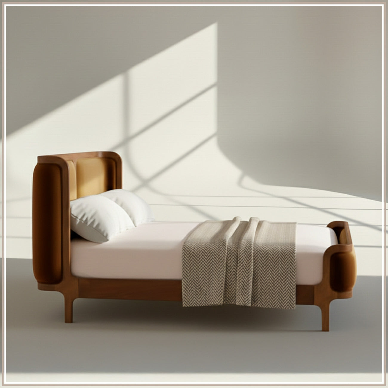Contemporary and bold in its design language, the Nestroots Valerio Duo-Panel Luxe Bed is crafted to make a refined statement in modern bedrooms. The bed showcases a striking dual-panel upholstered headboard, thoughtfully designed to add visual depth, structure, and sophistication. Its clean geometry and balanced proportions create a strong yet elegant presence, making it an ideal choice for urban and contemporary interiors.Upholstered in rich, premium velvet, the bed offers a soft, plush texture that elevates comfort while enhancing its luxurious appeal. The velvet upholstery contrasts beautifully with the clean-lined oak wood frame, highlighting the craftsmanship and creating a harmonious blend of warmth and modern design. Every detail reflects precision and attention to quality, ensuring both style and durability.