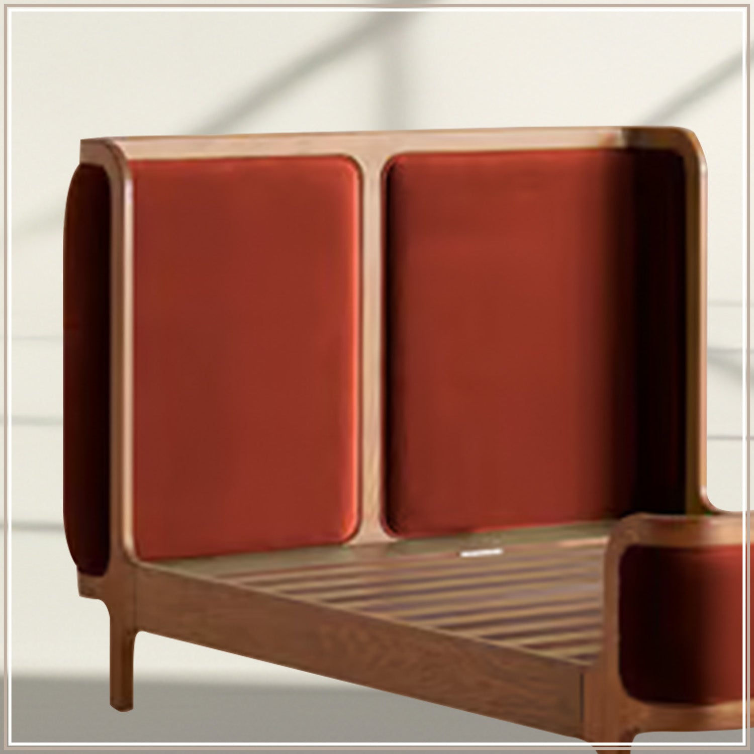 Valerio Duo-Panel Luxe King Size Bed in Rust Velvet with Oak wood Frame & Hydraulic Storage