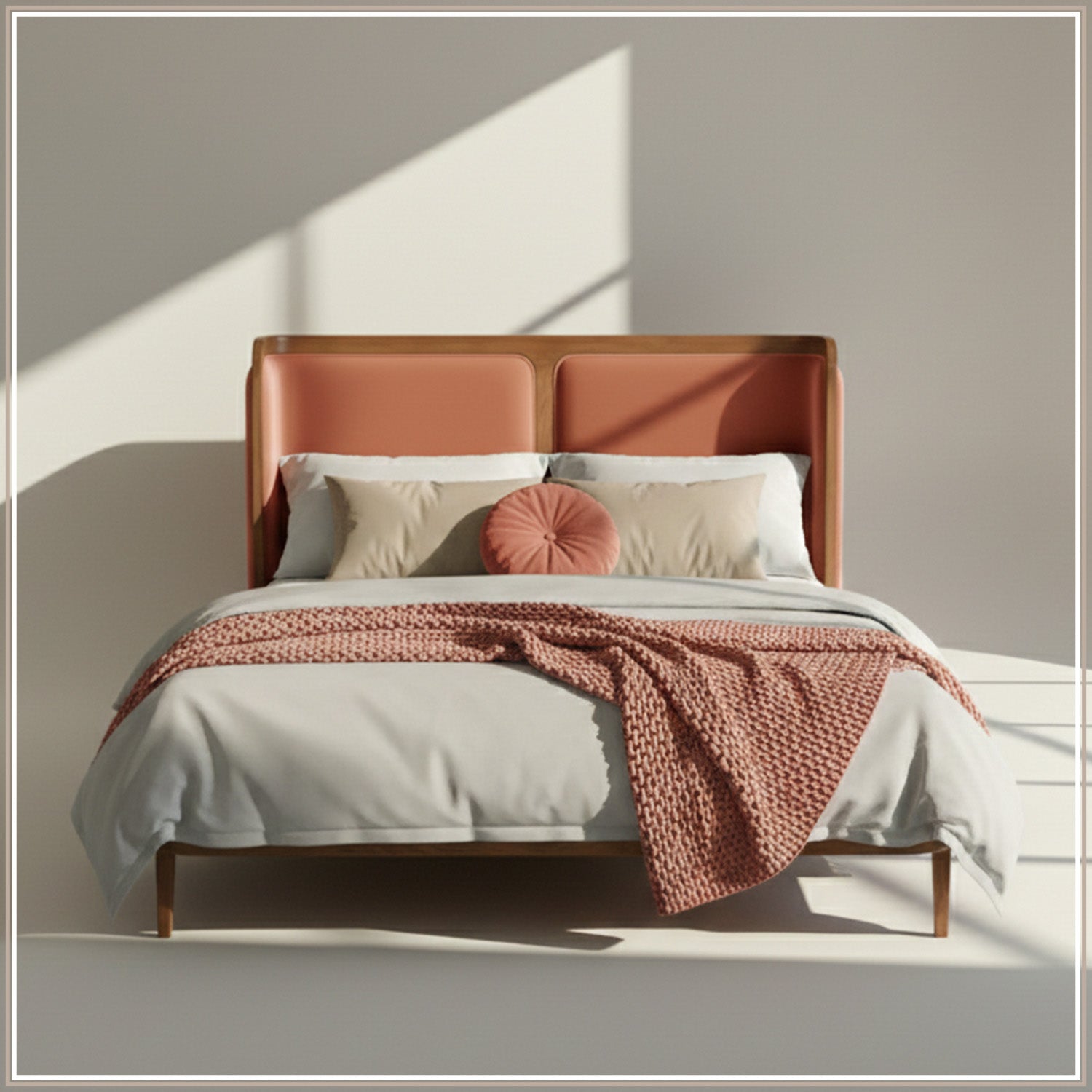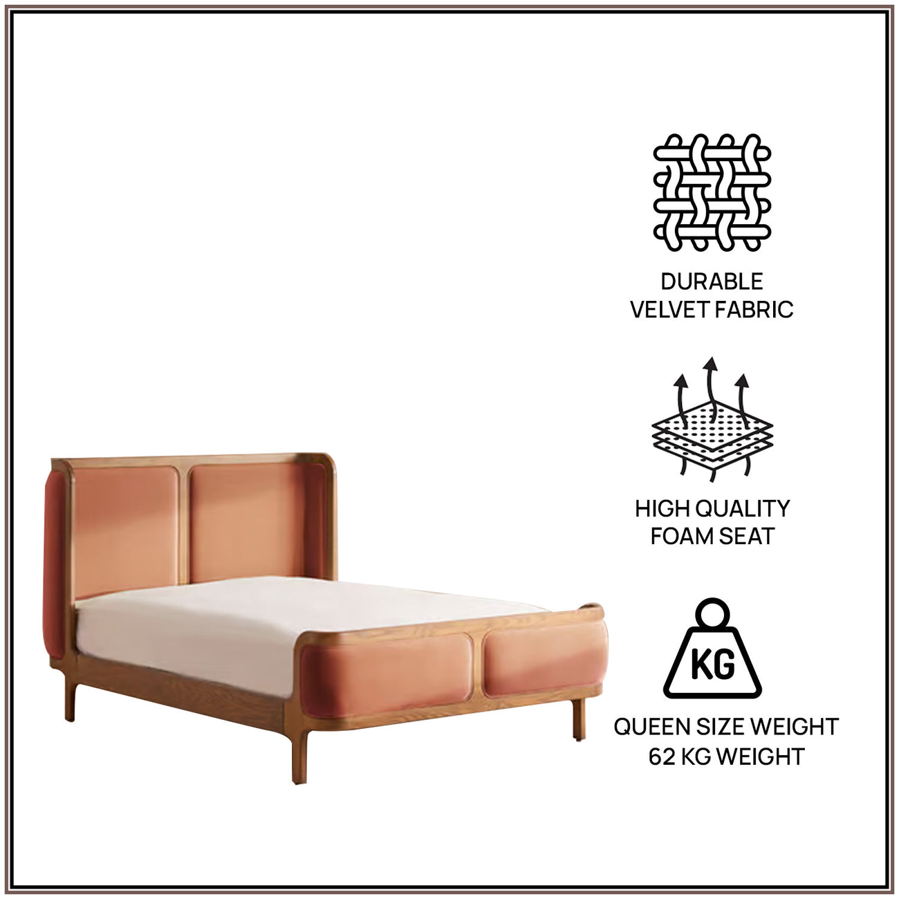 Contemporary and bold in its design language, the Nestroots Valerio Duo-Panel Luxe Bed is crafted to make a refined statement in modern bedrooms. The bed showcases a striking dual-panel upholstered headboard, thoughtfully designed to add visual depth, structure, and sophistication. Its clean geometry and balanced proportions create a strong yet elegant presence, making it an ideal choice for urban and contemporary interiors.Upholstered in rich, premium velvet, the bed offers a soft, plush texture that elevates comfort while enhancing its luxurious appeal. The velvet upholstery contrasts beautifully with the clean-lined oak wood frame, highlighting the craftsmanship and creating a harmonious blend of warmth and modern design. Every detail reflects precision and attention to quality, ensuring both style and durability.